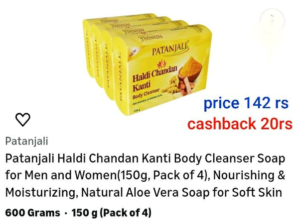 Transform your daily skincare routine with the Patanjali Haldi Chandankanti Body Cleanser, exclusively available at STARLIFE. Crafted with the goodness of natural ingredients, this 600g soap is your gateway to radiant and healthy skin. Designed to cater to all skin types, it combines the age-old benefits of Haldi (Turmeric) and Chandan (Sandalwood), ensuring a gentle yet effective cleansing experience.